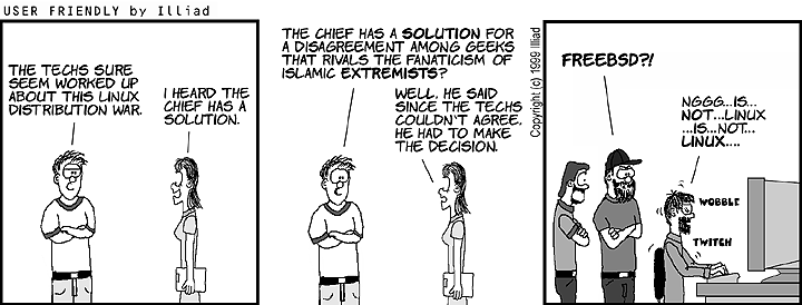 Även om Sklaffkom numera fungerar lika bra på Linux så har vi valt att hålla fast vid traditionen och köra systemet på FreeBSD. Det är inte utan sina utmaningar, givetvis, men ska det vara rätt så ska det vara rätt då Sklaffkom under sin glanstid som BBS-system för Söderkom kördes på NetBSD, en kusin till FreeBSD.